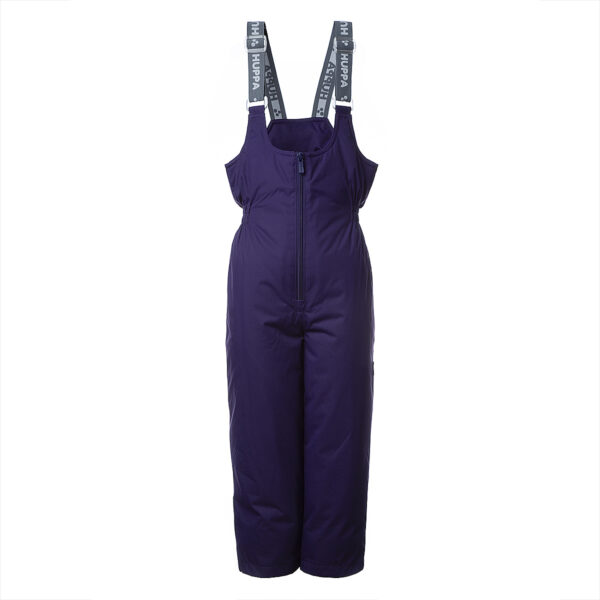 Girls´ winter set. The set has a soft taffeta and fleece lining and the outer fabric is wind and waterproof. The jacket has 300g and the trousers have 160g insulation. The trousers have a taped seat seam, a high waist, a snow guard at the leg ends and the leg ends are also covered with the outer fabric from the inside. The set has reflective details. The removable hood is attached to the collar with snaps. The trousers have adjustable elastic suspenders and an elastic band at the bottom of the leg.
