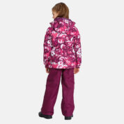Children´s transition season jacket and pants set. Water- and windproof, breathable outer fabric. The inside of the jacket and trousers is made of soft lining fabric. Rubber band incorporated in the sleeve ends, hood edge, and back waist. The removable hood attaches to the collar with press studs. The trousers have a higher waist and adjustable elastic braces. incorporated rubber waistband. Rubber band tunnel with stoppers at the ends of the legs. Waterproof taped seat seam. The pants have no inseam on the leg. Both jackets and trousers have reflective details.