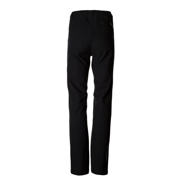 Children’s windproof Softshell pants Brushed soft on the inside Buttonhole-adjustable waist Integrated zippered pockets Reflective logo on lower leg