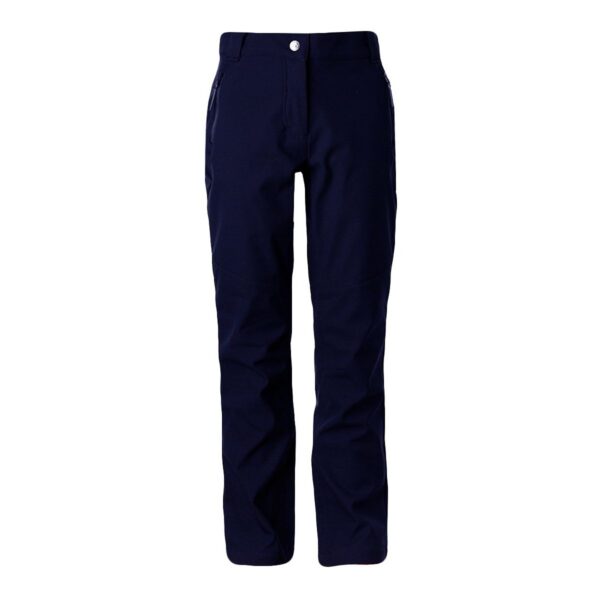 Children’s windproof Softshell pants Brushed soft on the inside Buttonhole-adjustable waist Integrated zippered pockets Reflective logo on lower leg