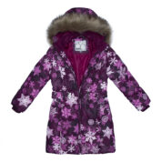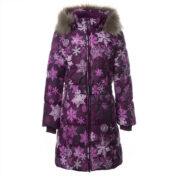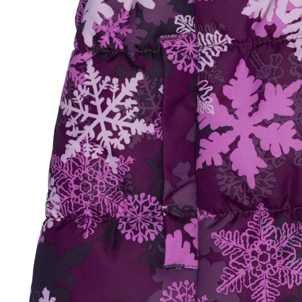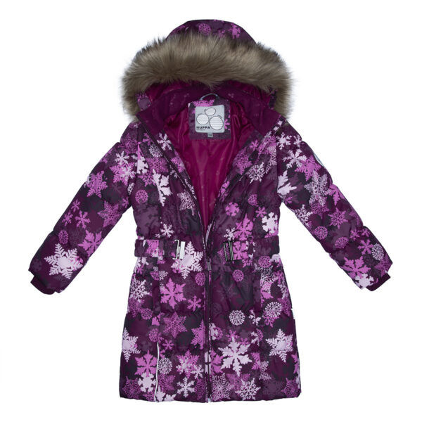 Children’s waterproof and windproof winter coat Breathable fabric Soft lining on the inside Removable snap-on hood Ribbed cuffs at sleeve ends Two-way zipper at front Faux fur trim on hood Reflective elements on fabric