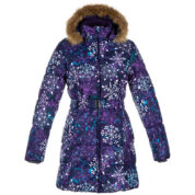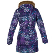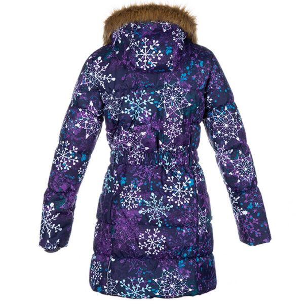 Children’s waterproof and windproof winter coat Breathable fabric Soft lining on the inside Removable snap-on hood Ribbed cuffs at sleeve ends Two-way zipper at front Faux fur trim on hood Reflective elements on fabric