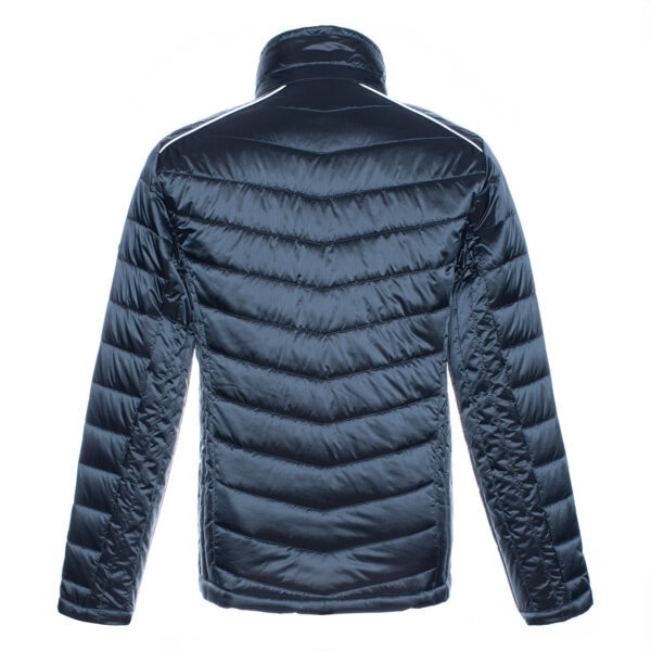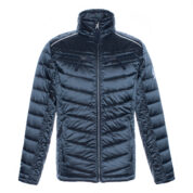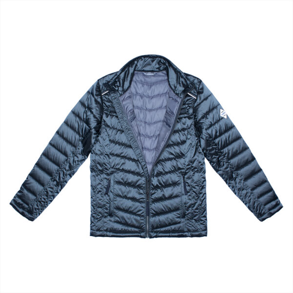 Men´s quilted jacket. Windproof slightly glossy top fabric. The jacket is filled with innovative recycled material imitating the properties of feather fill. The material is warm, dries quickly and does not clump after washing. A great to natural feather fill.