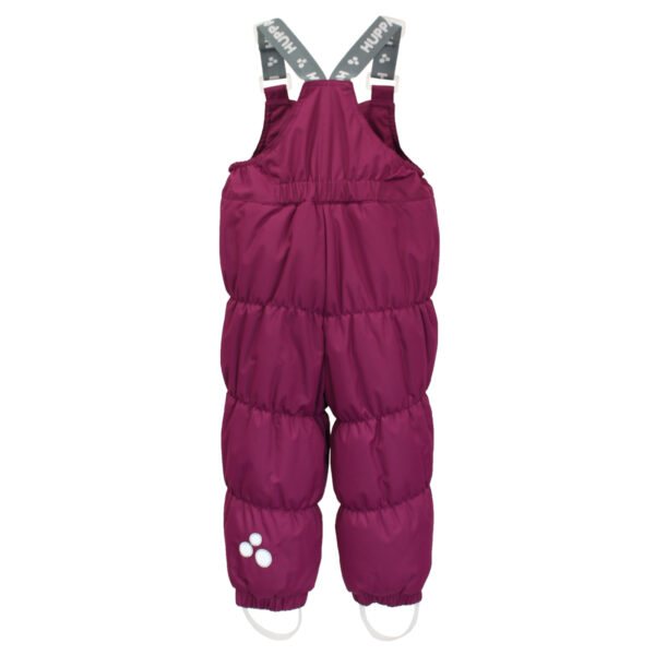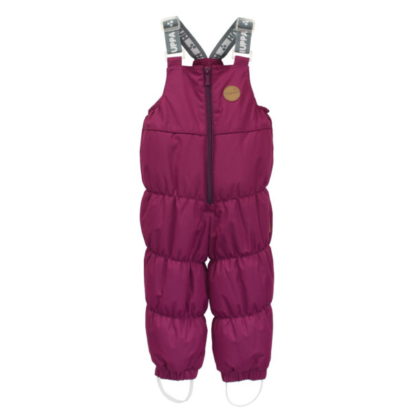 Children’s waterproof and windproof pants with 160 g lining Breathable fabric Soft lining fabric on the inside The bib pants have elastic adjustable braces Integrated elastic band on waist and at leg ends Elastic foot straps Reflective elements on fabric