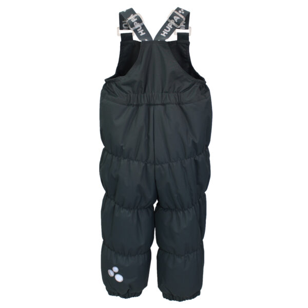 Children’s waterproof and windproof pants with 160 g lining Breathable fabric Soft lining fabric on the inside The bib pants have elastic adjustable braces Integrated elastic band on waist and at leg ends Elastic foot straps Reflective elements on fabric