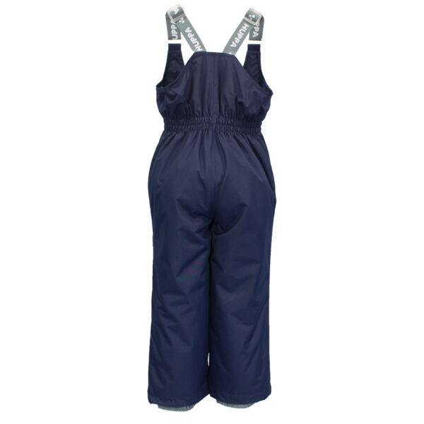 Children´s waterproof and windproof trousers. Breathable outer fabric. Inside of soft lining fabric. The trousers have a higher waist and adjustable elastic braces. Rubber band incorporated on the waistline and leg ends. Waterproof taped seat seam. The pants have no inseam on the leg. Reflective details on the outer fabric.