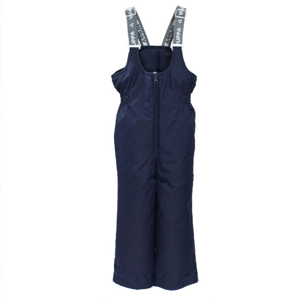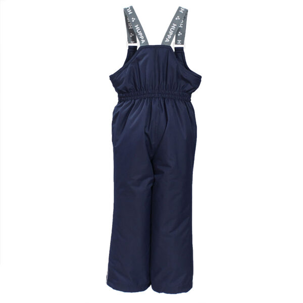Children´s waterproof and windproof trousers. Breathable outer fabric. Inside of soft lining fabric. The trousers have a higher waist and adjustable elastic braces. Rubber band incorporated on the waistline and leg ends. Waterproof taped seat seam. The pants have no inseam on the leg. Reflective details on the outer fabric.
