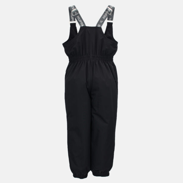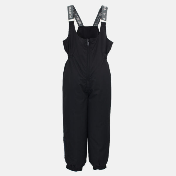 Children´s waterproof and windproof trousers. Breathable outer fabric. Inside of soft lining fabric. The trousers have a higher waist and adjustable elastic braces. Rubber band incorporated on the waistline and leg ends. Waterproof taped seat seam. The pants have no inseam on the leg. Reflective details on the outer fabric.