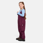 Children´s waterproof and windproof trousers. Breathable outer fabric. Inside of soft lining fabric. The trousers have a higher waist and adjustable elastic braces. Rubber band incorporated on the waistline and leg ends. Waterproof taped seat seam. The pants have no inseam on the leg. Reflective details on the outer fabric.
