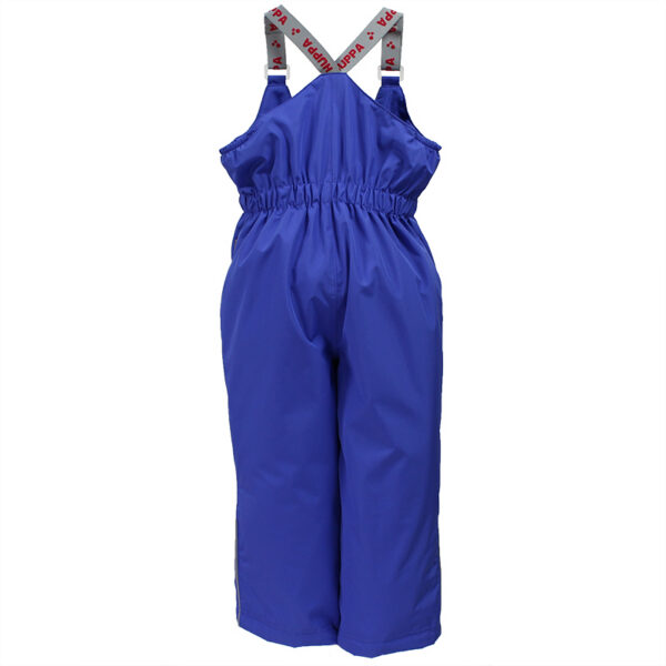Bērnu bikses ar augstu jostasvietu. Bikses ir ūdens- un vēja izturīgas. Elpojošs virsaudums. Bikšu iekšpusē ir mīksts oderaudums. Regulējamas, elastīgas lences. Jostasvietā iestrādāta gumijas lente. Staru galos gumijas auklas tunelis ar iestrādātām atdurēm. Ūdensnoturīga, stepēta sēžas šuve. Biksēm nav staras iekšējās šuves. Virsaudumam atstarojošas detaļas.