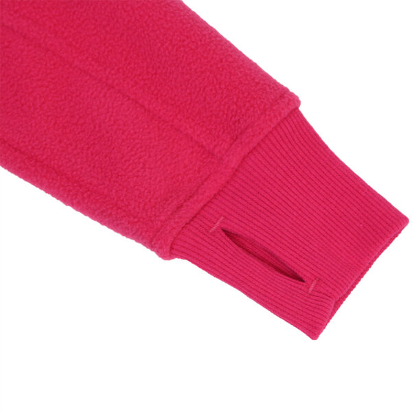 Soft fleece children’s jacket. Ribbed cuffs with thumb holes at sleeve ends. Zipper fastening. The jacket is great for wearing on its own or in colder weather as an additional layer under outer garments. Reflective elements at front and on shoulder.