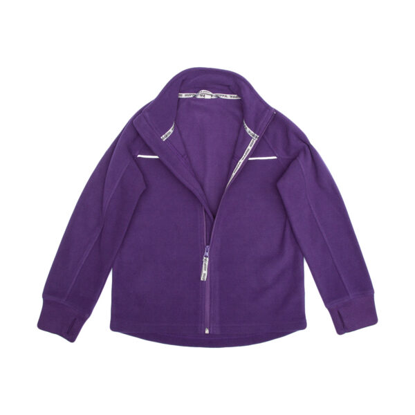 Soft fleece children’s jacket. Ribbed cuffs with thumb holes at sleeve ends. Zipper fastening. The jacket is great for wearing on its own or in colder weather as an additional layer under outer garments. Reflective elements at front and on shoulder.