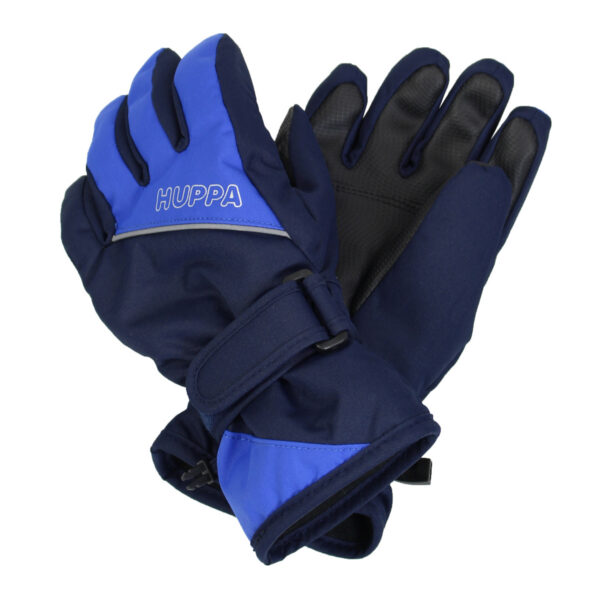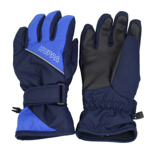 Children´s waterproof and windproof lined gloves with 150g of insulation. Breathable outer fabric. Comfortable integrated elastic band at the wrist. Adjustable wrist with Velcro closure. The inside of the gloves is made of soft fleece fabric. A small clip closure helps keep the pair of gloves together. Reflective details on the outer fabric.