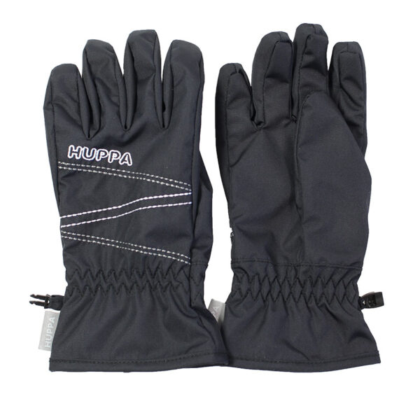 Bērnu ūdens- un vēja izturīgi pirkstaiņi. Elpojošs virsaudums. Plaukstas pamatnē ērta, iestrādāta gumijas lente. Cimdu iekšpusē ir mīksts flīsa audums. Cimdu pāri palīdz saturēt kopā neliels skavas stiprinājums. Uz virsauduma atstarojošs Huppa logo.