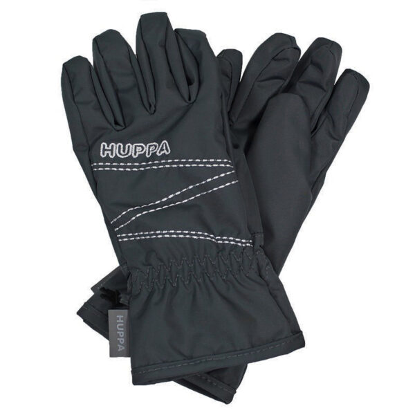 Waterproof and windproof gloves for adults. Breathable outer fabric. Comfortable incorporated rubber band on the wrist. The inside of the mittens is made of soft fleece fabric. A small clip helps keep the pair of gloves together. Huppa reflective logo on the outer fabric.