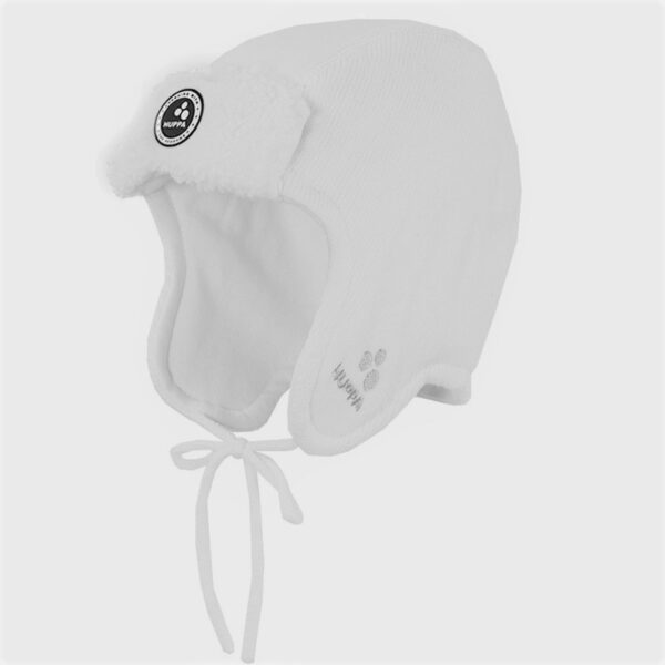 Children´s winter hat. It is made of 60% cotton, 40% acrylic and has a cotton jersey lining. 40g of insulation protects against the cold and the laces can be conveniently tied under the chin to protect against the wind.