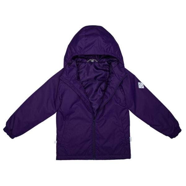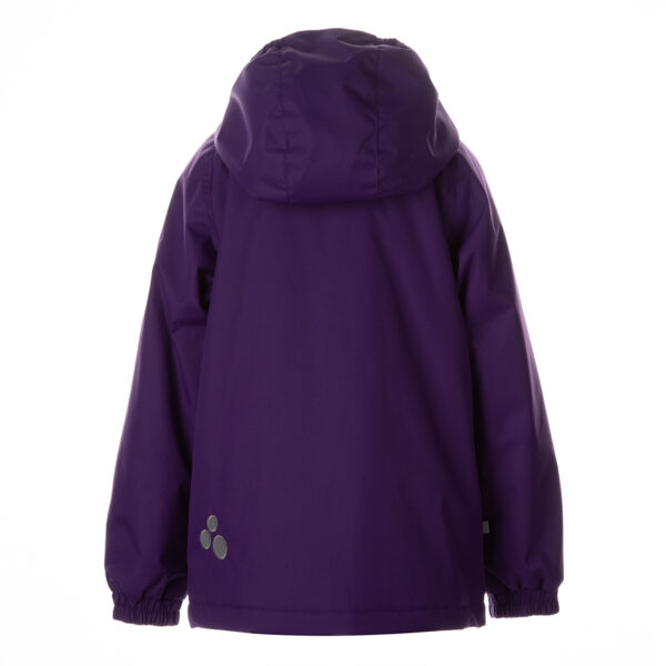 Insulated (100 g) water- and windproof between-seasons jacket for kids. The outer fabric is breathable. There is a sewn-in elastic band in the hood. Adjustable sleeves. The detachable hood can be attached to the collar with snap-buttons. The outer fabric is decorated with reflective details.