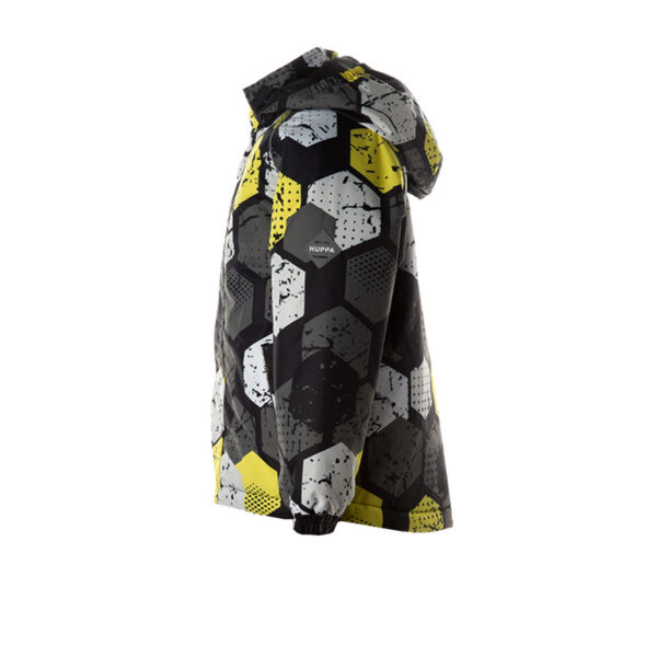 Children’s waterproof and windproof jacket. Breathable fabric. Soft mesh lining on the inside. Removable snap-on hood Integrated elastic band at sleeve ends. Zipper covered with stud-press flap at front. Integrated pockets at front. Reflective elements on fabric.
