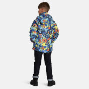 Children’s waterproof and windproof jacket. Breathable fabric. Soft mesh lining on the inside. Removable snap-on hood Integrated elastic band at sleeve ends. Zipper covered with stud-press flap at front. Integrated pockets at front. Reflective elements on fabric.