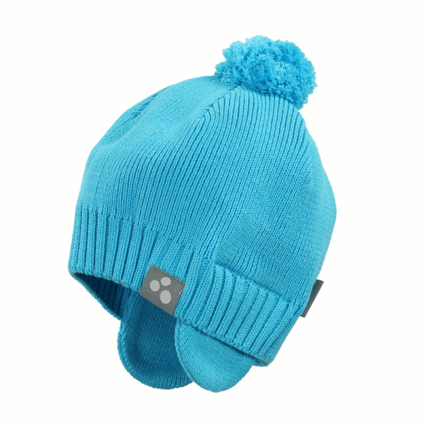 Children´s knitted cotton hat. For more comfortable wearing, the hat has small flaps to protect the ears.