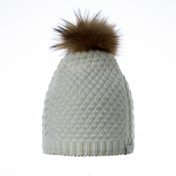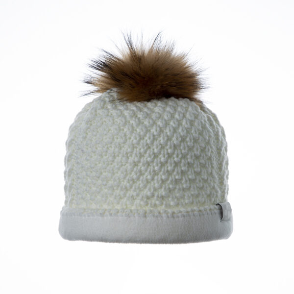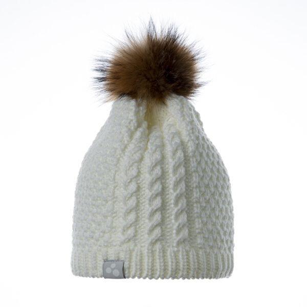 Vaikiška minkštų siūlų megzta kepurė su fliso pamušalu. Kepurės kutas iš natūralaus kailio. Ant kepurės šviesą atspindintis „Huppa“ logotipas.