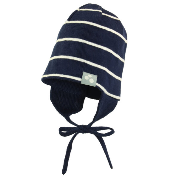 Children´s knitted spring-autumn hat. The hat is knitted from 100% cotton yarn. A modest Huppa logo is added to the front of the hat as decoration. For more comfortable wearing, the hat has earflaps and ties to keep the hat on the head better.
