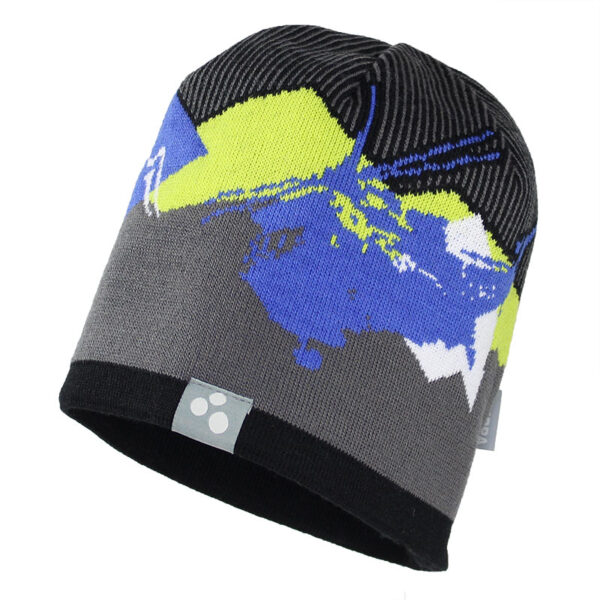 Boys´ winter hat. The hat is double-knitted from 50% merino wool, 50% acrylic and is well suited for protection in cold winter weather.