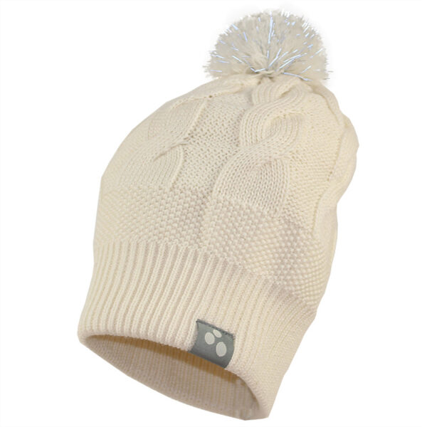 Tassel hat for girls. The hat is knitted from 50% merino wool, 50% acrylic. The nice ribbed hem protects the ears from the cold wind. The hat´s tassel contains reflective thread.
