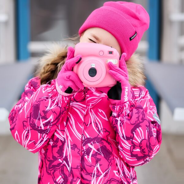 Vaikiška dviguba kepurė iš minkštų siūlų. Ant kepurės šviesą atspindintis „Huppa“ logotipas.