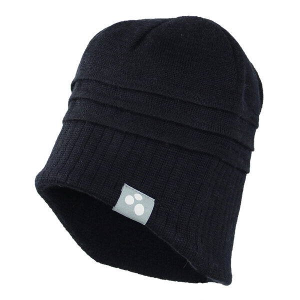 Poiste triipudega talvemüts. Müts on kahekordselt kootud 50% meriinovillasest, 50% akrüüllõngast ning sobib hästi külmade talveilmade kaitseks.
