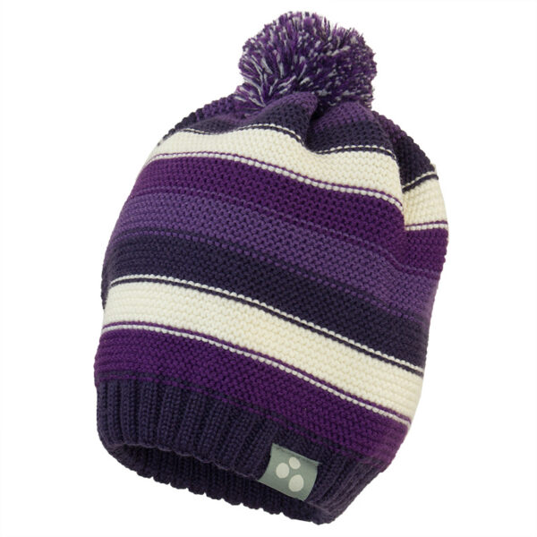 Children´s hat. It is made of 50% merino wool, 50% acrylic and has a cotton jersey lining. The hat is decorated with a colorful tassel.