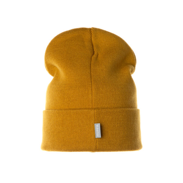 Vaikiška dviguba kepurė iš minkštų siūlų. Ant kepurės šviesą atspindintis „Huppa“ logotipas.