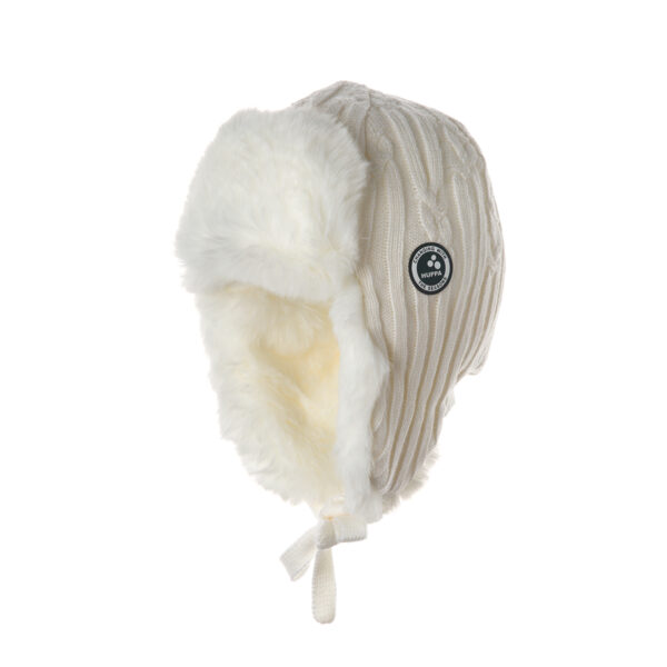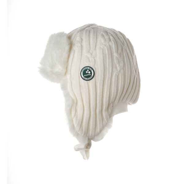 Bērnu mīkstā merino vilnas maisījuma adītā cepure ar oderi Cepures odere no kokvilnas trikotāžas Priekšpusē un ausu daļā jērādas imitācijas odere Uz cepures atstarojošs Huppa logo