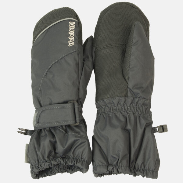 Bērnu ūdens un vēja necaurlaidīgie pirkstaiņi ar oderi Gaisu caurlaidīgs virsējais audums Plaukstu daļā un pamatnē ērti iestrādāta gumijas apdare Regulējama plaukstas velkro aizdare Cimdu odere no mīkstā flīsa auduma Papildus ūdens necaurlaidīgs starpslānis Cimdu pāri kopā palīdz saturēt neliels klipsis Auduma virspusē atstarojošs Huppa logo
