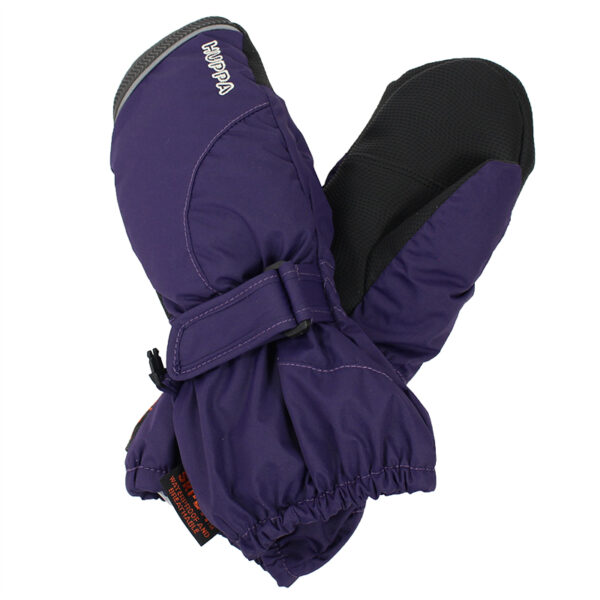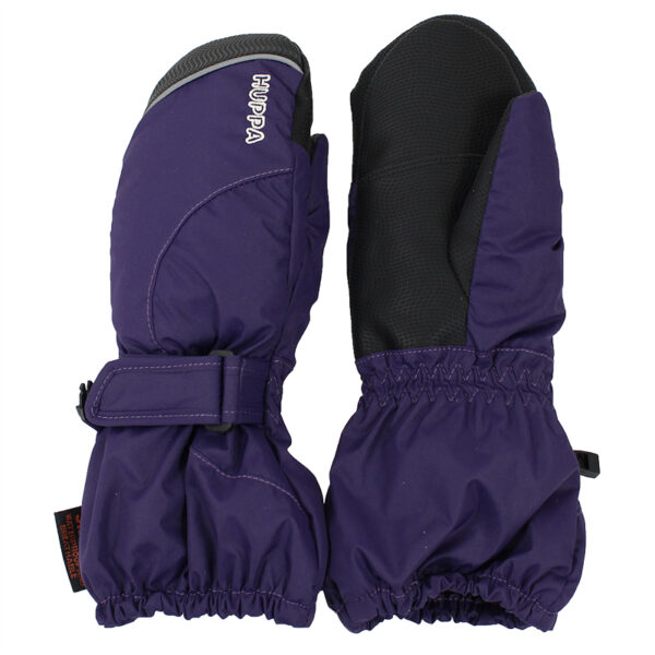 Bērnu ūdens un vēja necaurlaidīgie pirkstaiņi ar oderi Gaisu caurlaidīgs virsējais audums Plaukstu daļā un pamatnē ērti iestrādāta gumijas apdare Regulējama plaukstas velkro aizdare Cimdu odere no mīkstā flīsa auduma Papildus ūdens necaurlaidīgs starpslānis Cimdu pāri kopā palīdz saturēt neliels klipsis Auduma virspusē atstarojošs Huppa logo