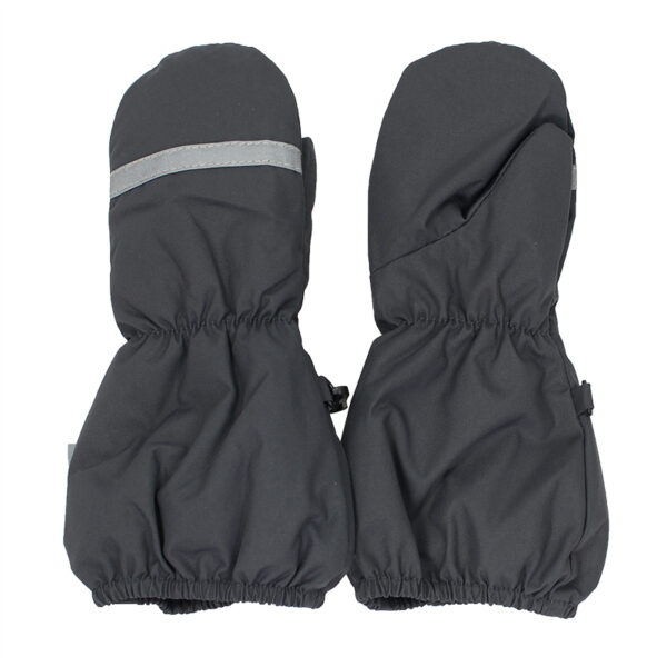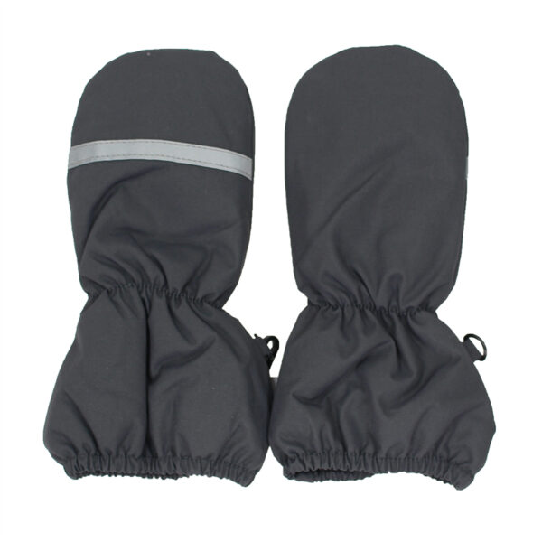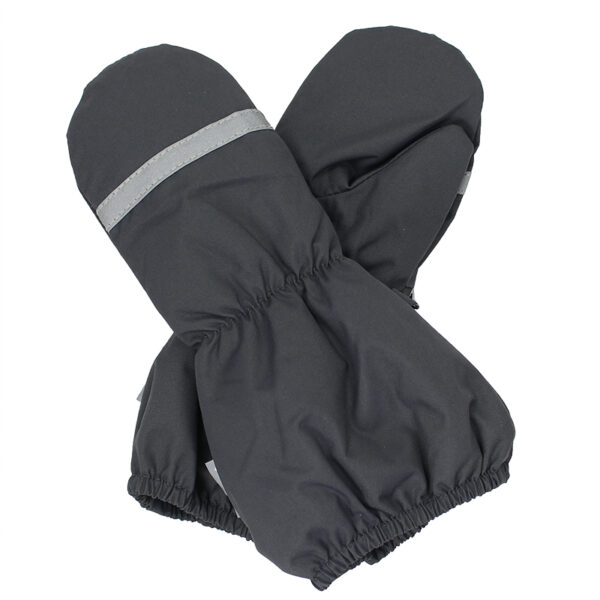 Children’s waterproof and windproof mittens with lining. Breathable fabric. Integrated elastic band on wrist and at bottom. Soft fleece on the inside. Reflective elements on fabric.