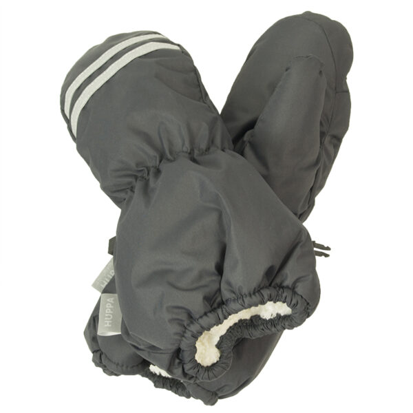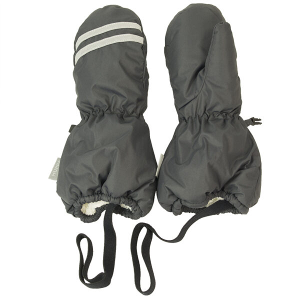 Vaikiškos neperšlampamos ir neperpučiamos pirštinės su pamušalu. Orui laidi išorinė medžiaga. Pirštinių vidinė pusė iš minkšto flisinio audinio. Pirštinių porą galima susegti mažu segtuku. Kad pirštinių nepamestumėte, ant riešo ir apačioje įsiūta patogi guminė juostelė. Papuoštos saugumą užtikrinančiomis šviesą atspindinčiomis juostelėmis. Dydis 0 be nykščio.