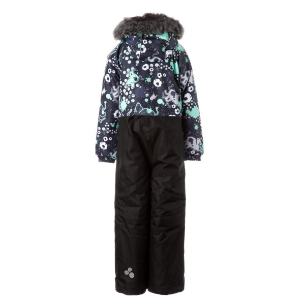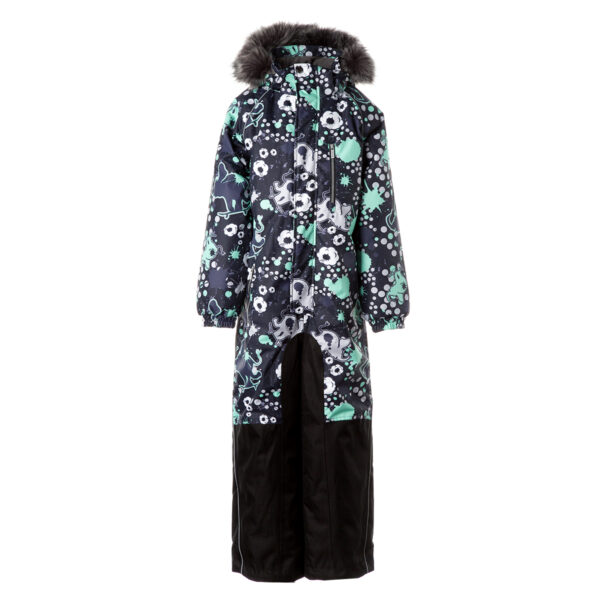 Toddler´s winter overall with 200g of insulation. Its lining is soft fleece fabric and the outer fabric is breathable, soft and weatherproof. The lower part made of reinforced Cordura fabric is especially durable and the leg ends are also covered with Cordura fabric from the inside to ensure dryness. Taped seams, elastic sleeve and leg ends and elastic under the feet keep the child warm and dry during active play. Reflective details added to the overalls ensure visibility in the dark. For safe outdoor play, the overalls have a removable hood with snaps that prevents getting caught. The fur edge can also be removed from the hood. The width of the cuffs can be adjusted from the inside.