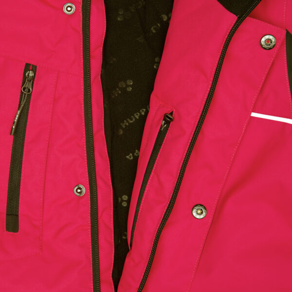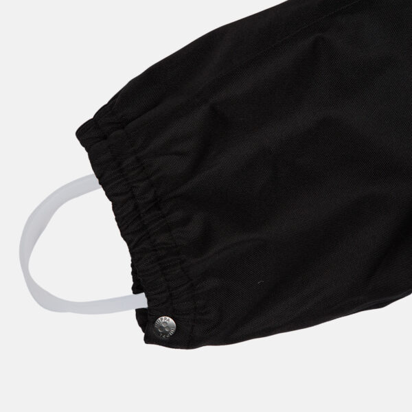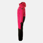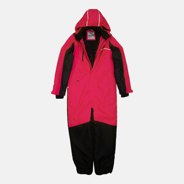 Children’s water- and windproof overalls with 200 g insulation. Breathable outer fabric. Soft lining fabric inside. Detachable hood. Adjustable elastic rubber band at the edge and back of the hood. Ribbed cuffs on sleeves. Adjustable sleeve cuffs. Front zipper with placket. Front zipper pockets and zipper breast pocket. Elastic waistband with buttonholes. Leg part in durable Cordura fabric. Waterproof taped seams. Reflective detailing on outer fabric.