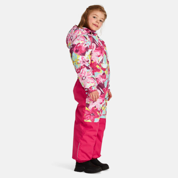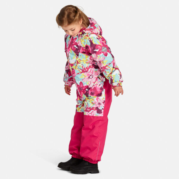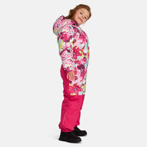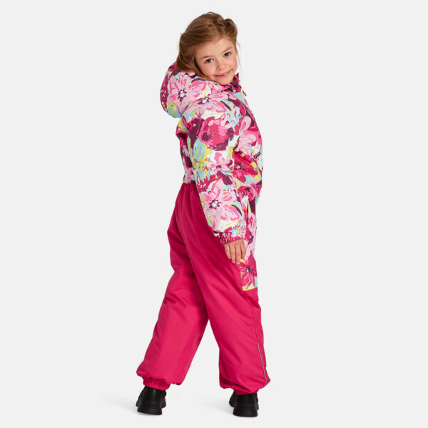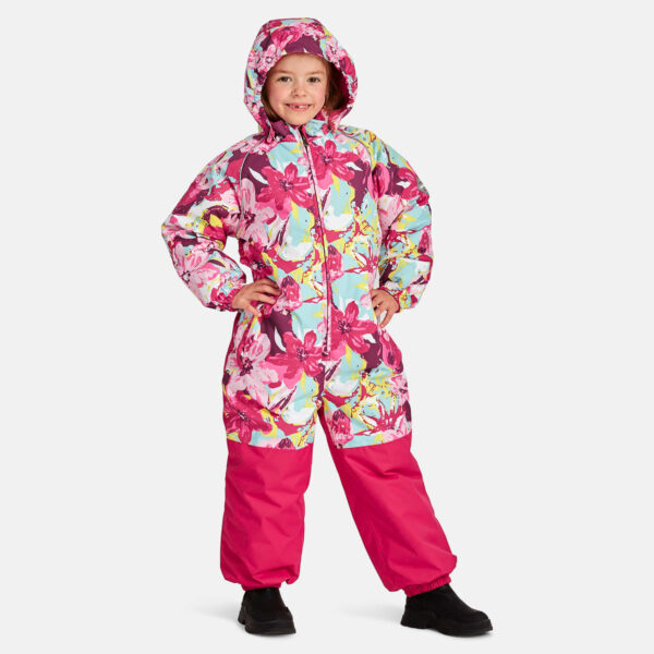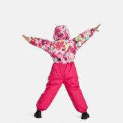 Bērnu ūdens un vēja necaurlaidīgs kombinezons Gaisu caurlaidīgs virsējais audums Kombinezonam mīksta flaneļa odere Piedurknēs, staru un kapuces malās iestrādāta gumijas apdare Noņemamā kapuce pie apkakles stiprināma ar velkro aizdari Priekšpusē apšūtas kabatas Ūdens necaurlaidīgi līmēti izšuvumi Komplektā elastīgas pazolītes Auduma virspusē atstarojošas detaļas