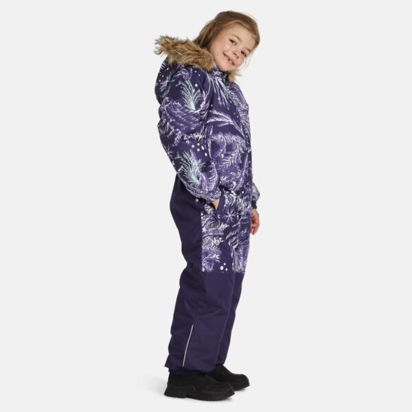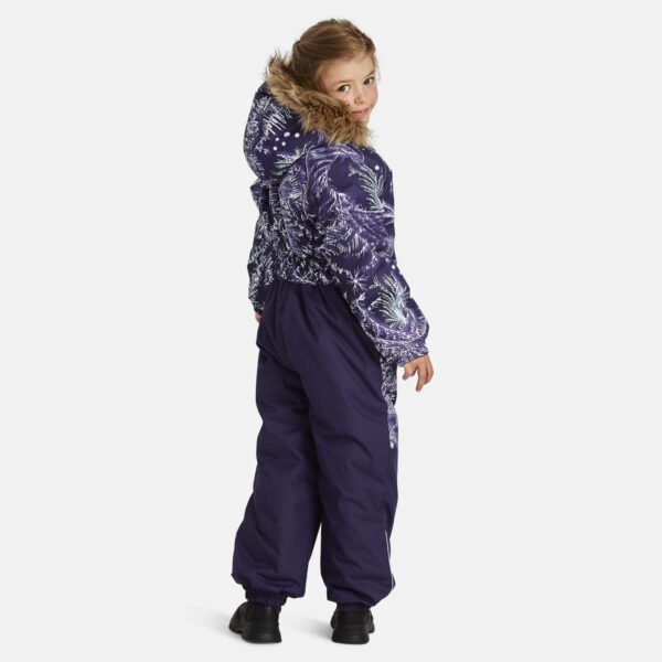 Bērnu ūdens un vēja necaurlaidīgs kombinezons. Gaisu caurlaidīgs virsējais audums. Kombinezonam mīksta odere. Piedurknēs un staru malās iestrādāta gumijas apdare. Noņemamā kapuce pie apkakles stiprināma ar velkro aizdari. Ūdens necaurlaidīgi līmēti izšuvumi. Komplektā elastīgas pazolītes. Auduma virspusē atstarojošas detaļas.