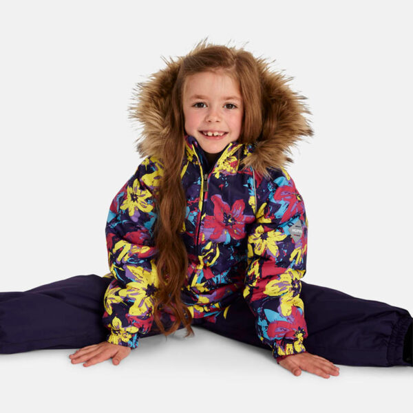 Bērnu ūdens un vēja necaurlaidīgs kombinezons. Gaisu caurlaidīgs virsējais audums. Kombinezonam mīksta odere. Piedurknēs un staru malās iestrādāta gumijas apdare. Noņemamā kapuce pie apkakles stiprināma ar velkro aizdari. Ūdens necaurlaidīgi līmēti izšuvumi. Komplektā elastīgas pazolītes. Auduma virspusē atstarojošas detaļas.