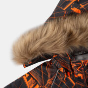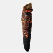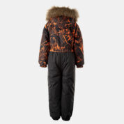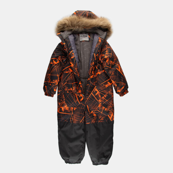 Vaikiškas neperšlampamas ir neperpučiamas kombinezonas. Orui laidi išorinė medžiaga. Kombinezono pamušalas iš minkšto audinio. Ant rankogalių ir klešnių galuose įsiūta guminė juostelė. Nuimamas gobtuvas prie apykaklės prisegamas kibiu lipduku. Priekyje įsiūtos kišenės su užtrauktuku. Vandeniui atsparios klijuotos siūlės. Komplekte yra elastingos guminės juostelės kelnėms prisegti prie batų. Gobtuvas apkraštuotas nuimamu dirbtiniu kailiu. Viršutinis audinys su šviesą atspindinčiomis detalėmis.