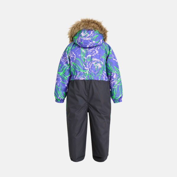 Vaikiškas neperšlampamas ir neperpučiamas kombinezonas. Orui laidi išorinė medžiaga. Kombinezono pamušalas iš minkšto audinio. Ant rankogalių ir klešnių galuose įsiūta guminė juostelė. Nuimamas gobtuvas prie apykaklės prisegamas kibiu lipduku. Priekyje įsiūtos kišenės su užtrauktuku. Vandeniui atsparios klijuotos siūlės. Komplekte yra elastingos guminės juostelės kelnėms prisegti prie batų. Gobtuvas apkraštuotas nuimamu dirbtiniu kailiu. Viršutinis audinys su šviesą atspindinčiomis detalėmis.