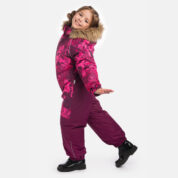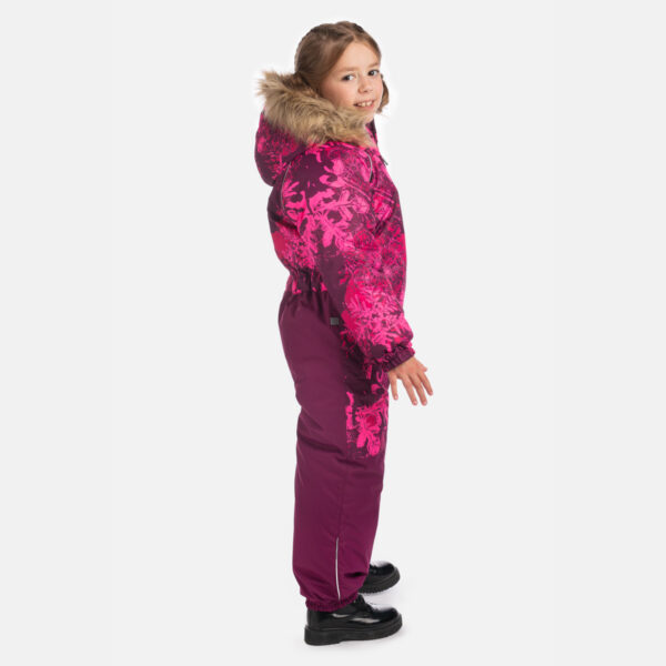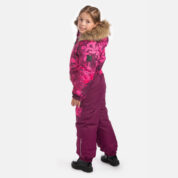 Children’s waterproof and windproof overall. Breathable fabric. Soft fabric on the inside. Integrated elastic band at sleeve and leg ends. Removable snap-on hood. Integrated zipper pocket at front. Waterproof taped seams. Elastic foot straps. Removable faux fur trim on hood. Reflective elements on fabric.