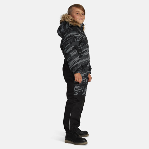 Bērnu ūdens un vēja necaurlaidīgs kombinezons.. Gaisu caurlaidīgs virsējais audums.. Kombinezonam mīksta odere.. Piedurknēs un staru malās iestrādāta gumijas apdare.. Noņemamā kapuce pie apkakles stiprināma ar velkro aizdari.. Ūdens necaurlaidīgi līmēti izšuvumi.. Komplektā elastīgas pazolītes.. Auduma virspusē atstarojošas detaļas.