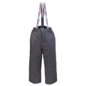 Children’s waterproof and windproof pants. Breathable fabric. Soft mesh lining on the inside of the pants. Adjustable removable braces. Integrated elastic band at waist. Drawstring tunnel and snow gaiters at leg ends. Waterproof taped seams. Reflective elements at the bottom.