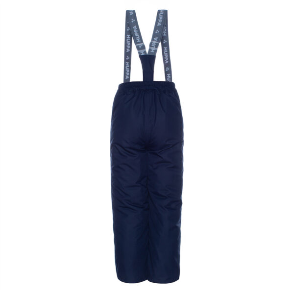 Children’s waterproof and windproof pants. Breathable fabric. Soft mesh lining on the inside of the pants. Adjustable removable braces. Integrated elastic band at waist. Drawstring tunnel and snow gaiters at leg ends. Waterproof taped seams. Reflective elements at the bottom.