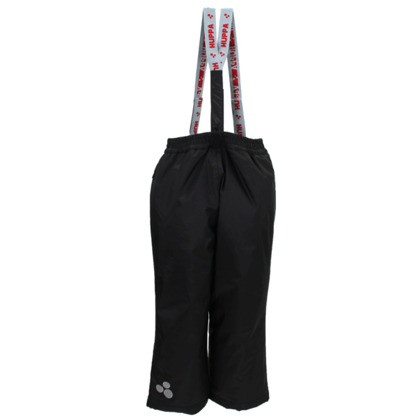 Children’s waterproof and windproof pants. Breathable fabric. Soft mesh lining on the inside of the pants. Adjustable removable braces. Integrated elastic band at waist. Drawstring tunnel and snow gaiters at leg ends. Waterproof taped seams. Reflective elements at the bottom.