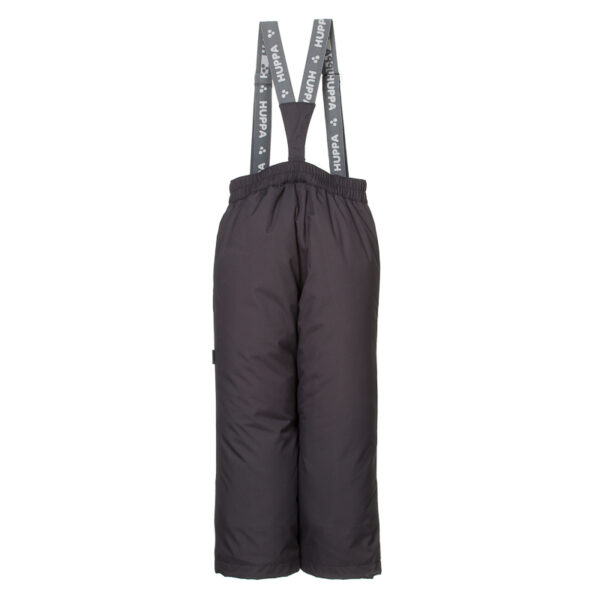 Children’s waterproof and windproof pants. Breathable fabric. Soft mesh lining on the inside of the pants. Adjustable removable braces. Integrated elastic band at waist. Drawstring tunnel and snow gaiters at leg ends. Waterproof taped seams. Reflective elements at the bottom.